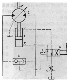 1-變量缸;2-馬達(dá);3-梭閥;4-節(jié)流閥;5-手動(dòng)換向閥