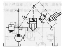 圖3. 4-18中插裝閥K液阻橋路在L1、L2形成減壓回路。在此回路中插裝閥K為常開式。L2點(diǎn)的壓力為減壓后的壓力,此壓力由先導(dǎo)溢流閥Dp調(diào)定。先導(dǎo)液阻R為插裝閥K閥心的連續(xù)變化提供條件。