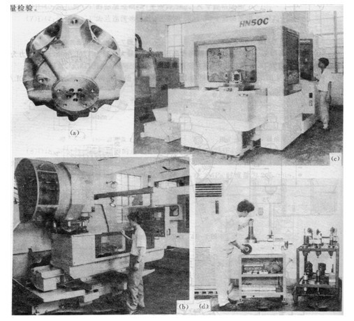 NHM型馬達(dá)的生產(chǎn)過程均采用先進(jìn)的技術(shù)與設(shè)備。圖1(a)是采用球墨鑄鐵精密鑄造的馬達(dá)殼體,其內(nèi)在質(zhì)量和外觀表面均已達(dá)到世界著名公司的水平;圖7-7(b)、(c)是在數(shù)控機(jī)床和進(jìn)口加工中心加工零部件的情形;圖7-7(d)為檢驗(yàn)人員正在一絲不茍進(jìn)行產(chǎn)品質(zhì)量檢驗(yàn)。