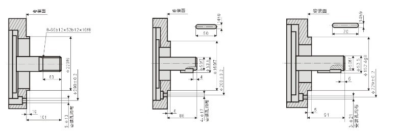 標(biāo)準(zhǔn)外花鍵:YLM6-**                                                            標(biāo)準(zhǔn)平鍵:YLM6-**B                                             標(biāo)準(zhǔn)內(nèi)花鍵:YLM6-**I